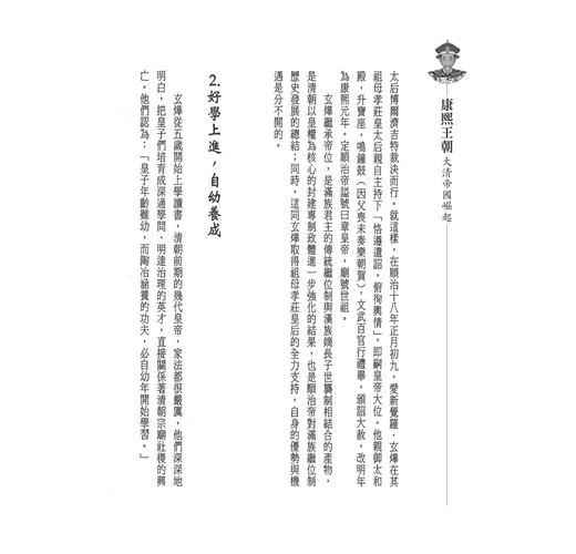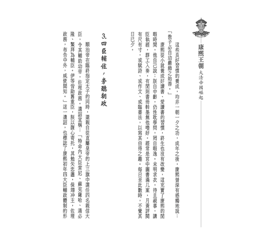 由此可見康熙,在中國歷史的地位,可算是舉足輕重,這些都是有史可查、有証可考的;康熙八歲登基、十四歲親政,康熙王朝演繹歷史六十一載。
