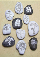 石頭象徵著堅定、堅固、頑強,以及各種我們所嚮往的品質。人們用石心比喻堅定的信念,用石交指代牢固的友誼,石頭的魅力恆久不衰。可以說,人類生活的各方面,無處不利用石頭或變相利用石頭。石頭的形態不一、顏色各異,給人質樸的感覺。時下,科學技術日新月異,各種新奇的材料幾乎可以達到人們想要的任何效果,石頭卻從來沒有喪失它的光彩,依舊牽動著人們的夢想。用繪畫的方式,將這些石頭變廢為寶,這些原本平凡的石頭,經過彩色顏料的渲染,它將煥然一新。