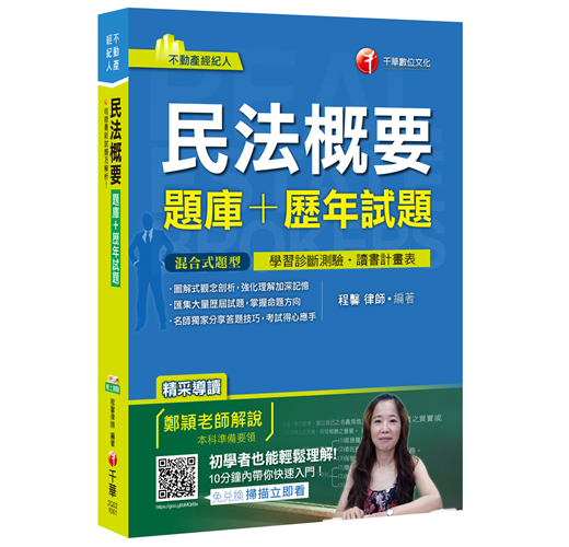有心上榜的考生們,對於民法的準備千萬不能夠掉以輕心,千華特別聘請民法權威─程馨律師~為考生將歷屆考試題型利用圖解解題方式,讓考生對於繁複的法條不再害怕,也更容易了解。跟著我們穩紮穩打,掌握學習的脈絡與技巧,進而擷取上榜的榮耀吧!