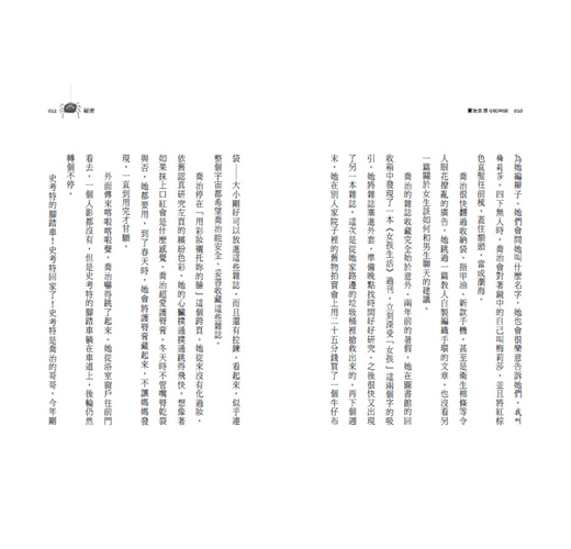 喬治倒出布袋的內容物,十幾本封面閃亮亮的雜誌立刻散落在浴室的磁磚地板上。封面標題都是自信滿滿的文字:「如何擁有完美肌膚」、「十二種今夏最新炫麗髮型」、「如何向帥哥告白」,還有「狂野冬天新造型」。比起雜誌頁面上那些對著她微笑的女孩,喬治只小幾歲而已,她當她們是貼心好友。
