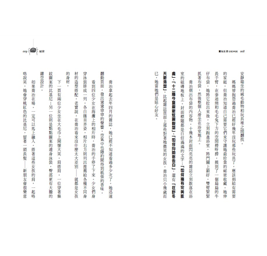 喬治很快翻過收納袋、指甲油、新款手機,甚至是衛生棉條等令人眼花撩亂的廣告。她跳過一篇教人自製編織手環的文章,也沒看另一篇關於女生該如何和男生聊天的建議。