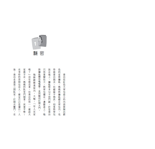 伍特老師拿了「廁所通行證」過來。這是幼稚園課堂上用過的舊積木,一面用綠色奇異筆寫著大大的「男生」。喬治立刻將積木翻過來,桌面發出空洞的啪一聲,此時朝向她的那一面積木寫著「二〇五教室」。