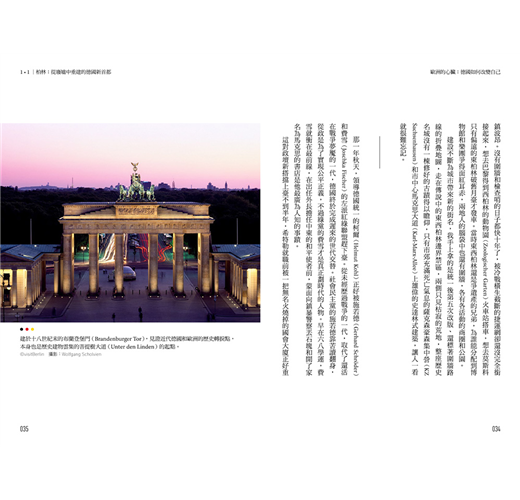 德國每年移入的人口僅次於美國,綠能和汽車產品一樣供不應求,貿易順差甚至超越中國和日本。媒體樂於複製的東西德格格不入、或德國人一板一眼的刻板印象,早已無法解釋德國近年的變化。當今全球局勢走向對立,柏林卻反其道而行,想作為全人類知識和文明對話的平臺,想知道這個剛剛克服獨裁和分裂的新國家未來往哪裡走,看看菩提樹大道尾端最近又出現的工地就能明白