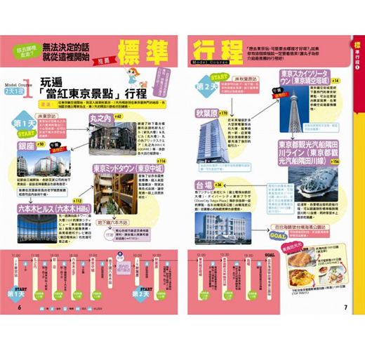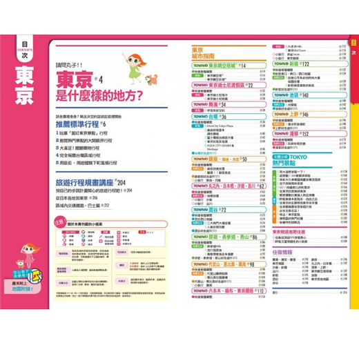 【行程】本書特別規劃出最適合完東京的主題式行程,當中包含了吃喝玩樂各項資訊,還附上交通方式與景點移動的所需時間,不想費心找行程資料的人,一定要參考!