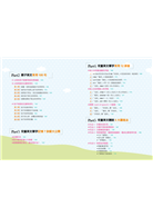 Part 7兒童英文文法10大招 第1招名詞單數複數表達 第2招動詞單數複數 第3招動詞過去式用法 第4招 be 動詞辨別~玩遊戲找出be 動詞 (一) be 動詞+名詞 (二) be 動詞+形容詞 (三) be 動詞 + 現在分詞(動詞-ing) (四) be 動詞 + 過去分詞(原形動詞-ed) 第5招助動詞的使用 第6招 has/have/had 的使用 (一) has/have/had +「名詞」 (二) has/have/had+「名詞」vs. There +「be 動詞」+「名詞」 (三) has/have/had + 動詞過去分詞(-ed爲主) 第7招形容詞的比較級最高級 第8招兩個動詞的連接方法 (一)動詞1+ to + 動詞2 (二)動詞1+and/or + 動詞2 (使用and,or連接詞) (三)動詞1+ 動詞2-ing (動詞2改成現在分詞或動名詞) (四) 例外狀況(使役動詞) 第9招疑問句的觀念 (一) 「be 動詞」 (二) 「助動詞 can/may/will」 (三) Do/dose/did (四) 「疑問詞Why/where/how」 第10招如何用英文說『所擁有的』