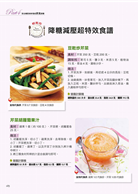 銀芽雞絲、南瓜清燉牛肉、小番茄炒扇貝、蘋果炒雞柳、涼拌芝麻海帶、橄欖油馬鈴薯沙拉、洋蔥圈煎蛋、蘿蔔排骨湯、山藥蝦粥……醫師們精心設計150道「少油、少糖、少鹽和高纖」的料理,豐富多變的口味不僅做法簡單,每道清楚標示營養成分,有效預防血糖破表。