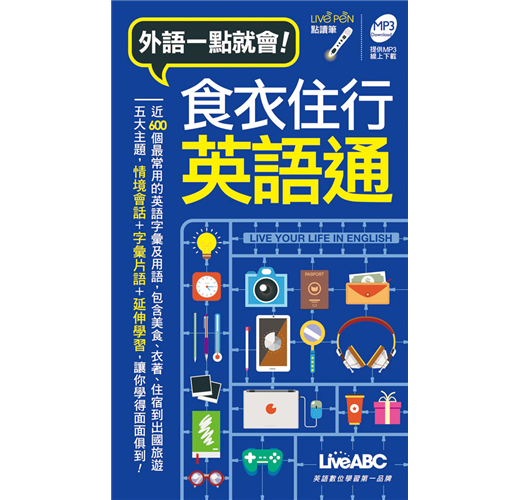 本書完整涵蓋了你生活中所需要的重要英語詞彙與表達用語。無論是出國旅遊、留學或出差,日常生活中的「食」、「衣」、「住」、「行」是每天都會接觸到的四大元素。現在就跟著我們一起使用本書,學習食衣住行及日常生活中絕對能派上用場的實用英語吧!