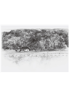 等我繞過黃昏的柏樹林,在廢棄的河道上發現詩人的柏舟時,已是兩千多年後的事。傾圯的舟身,一半擱在河中的沙洲上,有一些小鳥停駐,旋飛。詩人離去,象徵愛與智慧的金黃色糧食也已不見。