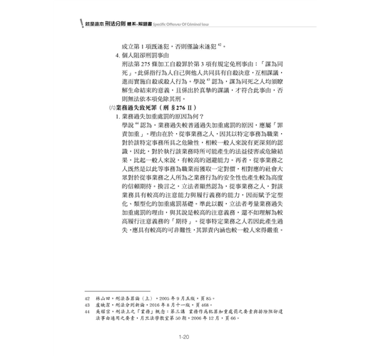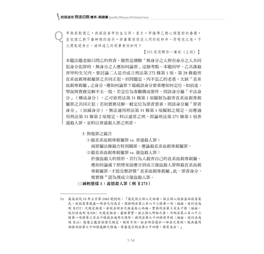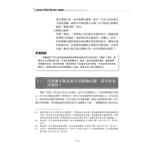 這本小書才出第二版,身為作者,擁有絕對的恣意,大筆一揮,從兩本瘦身為一本,減輕讀者啃食部頭書的負擔。不過,改版不是只要刪稿即可,旁徵博引,讓體系開枝散葉,也是主要工作之一。因此,這兩年來學說與實務見解,我依然詳列於書中,並針對考試上重要的概念適時提醒,如同家教在旁指導一般。此外,體系與題目一定要相互應證,這本考試用書的價值才能被讀者彰顯。您會在這本書裡看到為數不少的題目,每題至少都有分析,有些還提供擬答。不過要注意,擬答是以我個人的理解來撰寫,思考不周是正常,但能發現作者思考的盲點,是讀者必備的技能。很歡迎各位到粉專與我對話(網址:https://www.facebook.com/AAshiang),透過討論激盪刑法知識的火花,是支撐我繼續為各位服務的小小動力。