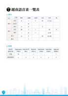 越南語屬於孤立語,是單一音節的語言;越南文字則屬羅馬字拼音文字,每一個字母代表一個音,若干字母結合在一起會將其發音融合,成為一個唯一的音。因此本教材第一課,將介紹越南語的拼音結構、聲母、韻母、聲調等語音因素。另外也將同源於漢字的越南語發音,和華語發音做個比較,讓讀者理解越南的拼音模式。越南語的詞彙雖然無法從字體本身看出其詞性,但藉由其意思可見它能在句子當中扮演的角色。