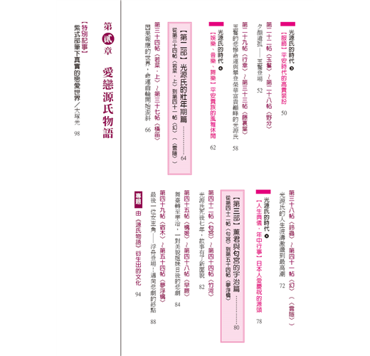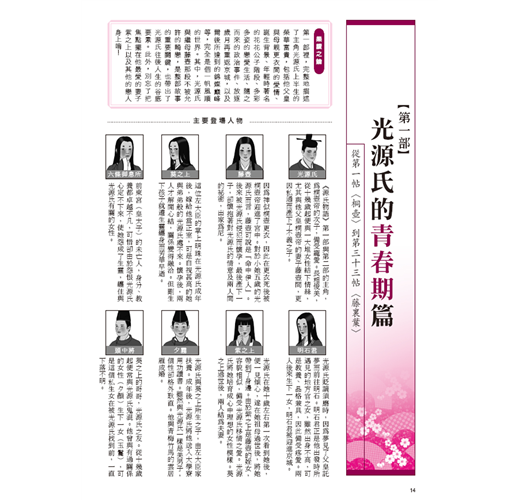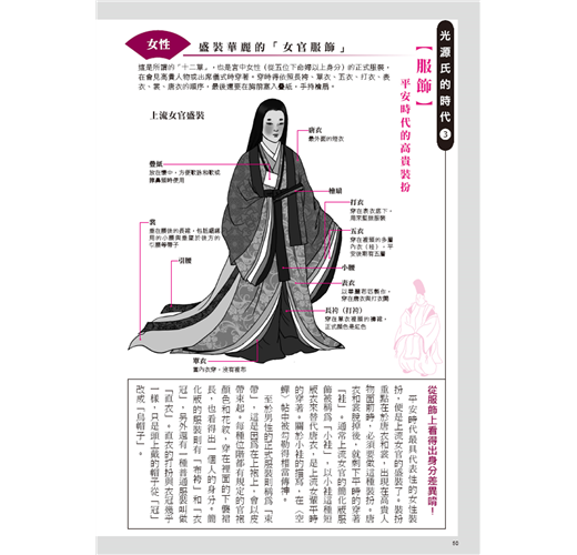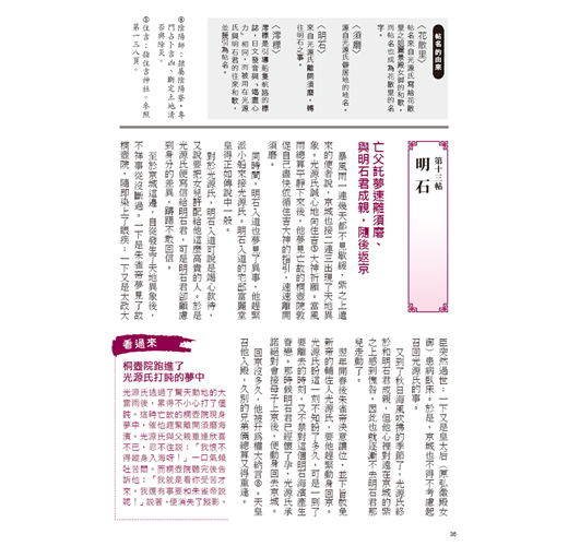登場人物相關圖、帖名由來、名詞解釋、豪華殿造格局一覽、貴族服飾裝扮展示、生活風俗小知識……全面到位,