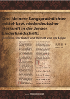 說唱詩與情詩並稱中世紀德語文學兩大抒情詩類。『耶拿詩歌手稿集』是說唱詩的重要保存體,對此一手稿的研究可上溯至17世紀,然而至今仍有保存於其中的作品尚未受到徹底的整理及深入的研究。針對此一缺口,作者挑選了三位有同性質的說唱詩人,其生存年代約在13世紀末、14世紀初,且都是來自德國中北部,將他們的詩集以編輯、註釋,並加以翻譯成現代德文。