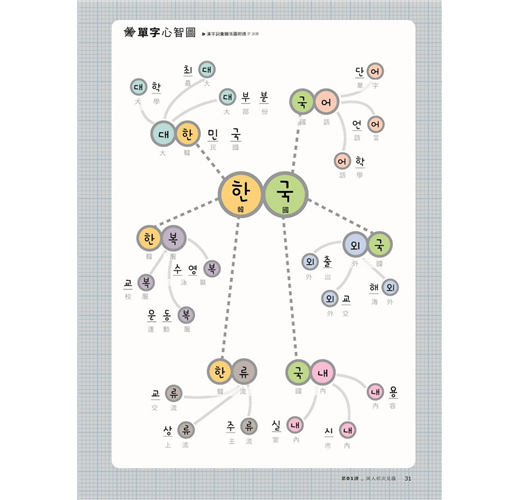 韓國這幾年越來越流行心智圖教學法,不僅將心智圖應用到寫作課程裡,還將心智圖應用在單字背誦上。本書每個單元均有單字心智圖〈Word Web〉,作者用活潑有趣的方式帶領讀者記誦補充單字,增加讀者的字彙量。