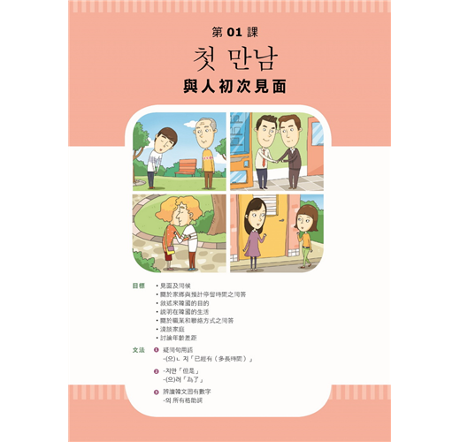 考量到銜接問題,吳承恩老師大量採納韓語自學者的意見,針對韓語自學者在跨越級數時會遇到的問題加強改善。本書最大的特色就是讓初級學習者無縫接軌中級課程,讀者不必擔心啃不下這本書,所謂的鴻溝問題在這本教材裡消失得無影無蹤。吳承恩老師特別為初級學習者量身打造,以初級的《我的第一本韓語課本》為基準延伸出這本中級學習教材,讓大家學得開心,學得沒有壓力。