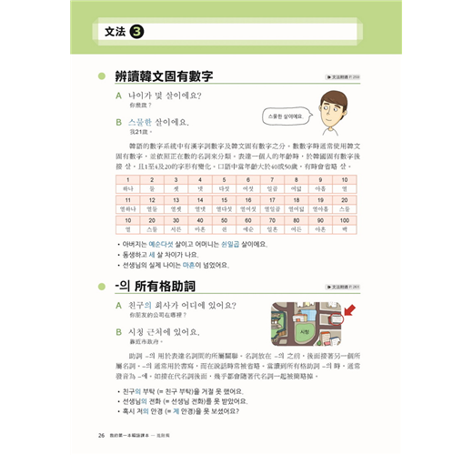 作者除了在文法部分對每課文法做簡單說明,還將本文中無法詳細解說的文法規則法整理成一份附錄。讀者若想加強文法,在學習的過程中也可搭配文法附錄一起使用。