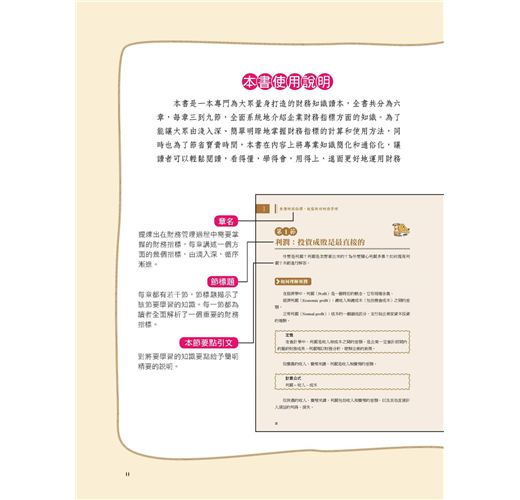 本書是一本專門為大眾量身打造的財務知識讀本,全書共分為六章,每章三到九節,全面系統地介紹企業財務指標方面的知識。為了能讓大眾由淺入深、簡單明瞭地掌握財務指標的計算和使用方法,同時也為了節省寶貴時間,本書在內容上將專業知識簡化和通俗化,讓讀者可以輕鬆閱讀,看得懂,學得會,用得上,進而更好地運用財務指標,做好財務管理。