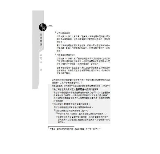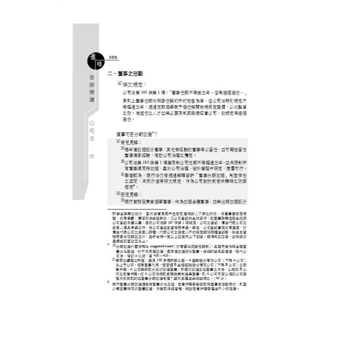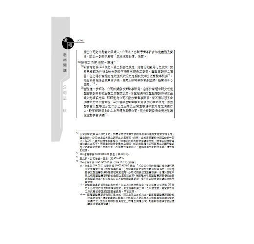 本書蒐羅大量的實務見解,輔助讀者能更加理解法條的實際操作;同時結合重點學者的文章,以精鍊的文字掌握學說見解的精髓,徹底制伏公司法!