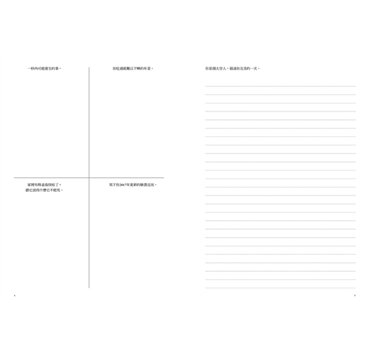 ★這本好玩的日記簿,結集了642道既古怪又詼諧的題目。從發想自己的訃文,到歌詠一顆洋蔥,每一頁都能激發靈感,且有充足的空白空間可盡情書寫,符合各路寫作者的各式需求。