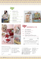 婚禮是分享幸福和給予祝福的日子,精美的婚禮小物,不論是贈送新人或是賓客,都是最珍貴的心意。本次單元收錄蜜月旅行必備的相伴成雙護照套、代表兩人成家的甜蜜小屋零錢包、可愛便利的心心相映卡套、精緻迷人的初戀鈕釦針線包&愛的急救包,多款甜蜜滿滿的婚禮布小物是否又喚起你新婚時的幸福滋味了呢!