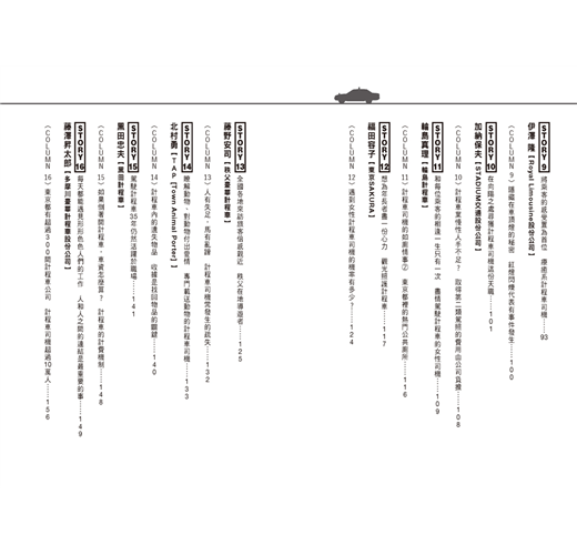 透過閱讀本書,除了能夠了解每位東京計程車司機的真實生活,以及日本的計程車世界之外,文中亦提及「餺飥」、「髒其林」等美食、旅遊、社會等日本文化相關知識。而在每一篇故事的結尾,編者更以專欄形式向讀者介紹了日本的計程車業的發展歷史、司機的煩惱、遺失物品、客訴以及計程車專業用語等各項有趣主題。東京運將們的計程車世界,歡迎搭乘。