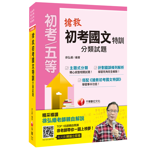 採主題式章節排列,完全配合《搶救初考國文特訓》的篇目次序編排題庫,除第七單元「閱讀理解能力特訓」外,每章節都有「國考考題破解」、「模擬測驗特訓」兩部分。特別針對國家考試命題方向設計訓練。使考生能厚植實力。