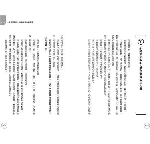 多數人都有過對失敗猛鑽牛角尖,無法擺脫挫折感的經驗。因為失敗而意志消沉,是大家都會碰到的事。這也算是生活中理所當然的經驗。不過如果一直耿耿於懷,就無法繼續前進,這樣非但不能解決問題,還有可能錯失良機。