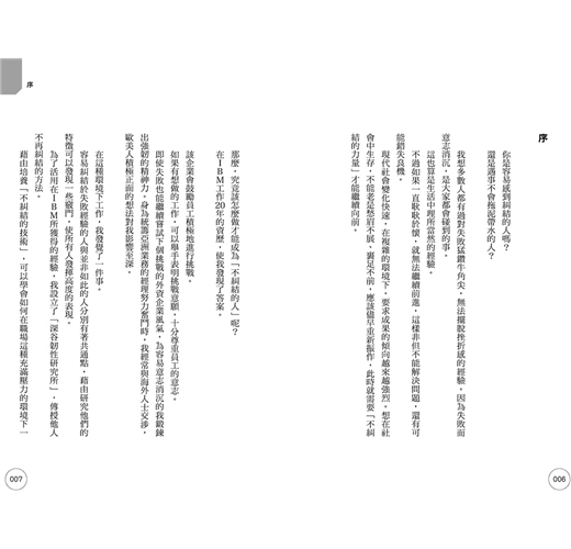 IBM會鼓勵員工積極地進行挑戰。如果有想做的工作,可以舉手表明挑戰意願,十分尊重員工的意志。即使失敗也能繼續嘗試下個挑戰的外資企業風氣,為容易意志消沉的人鍛鍊出強韌的精神。在這樣的環境下工作,使作者發覺了一件事: