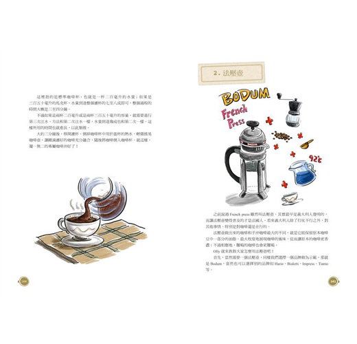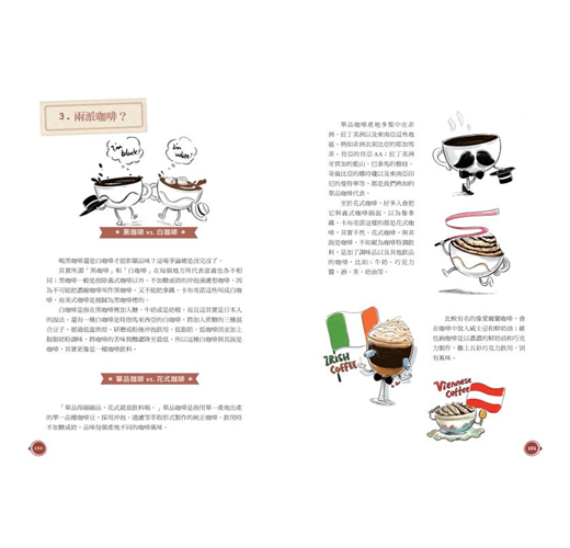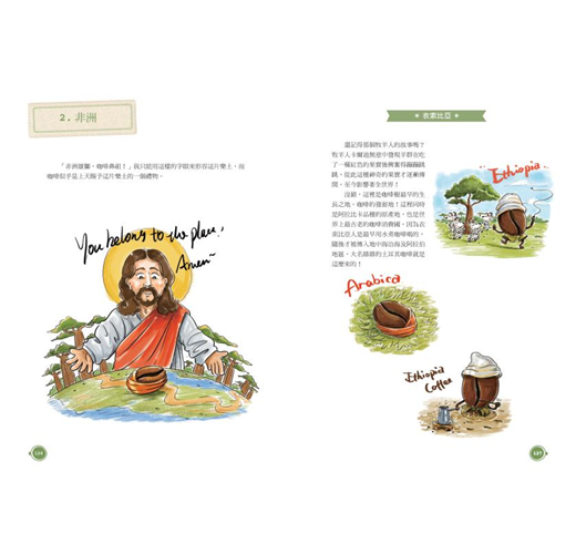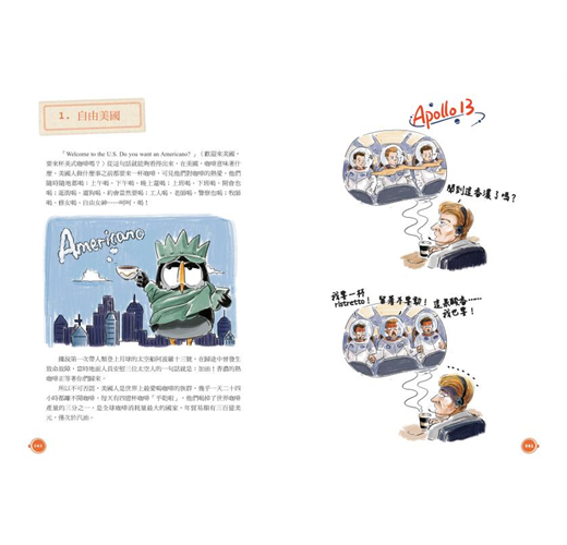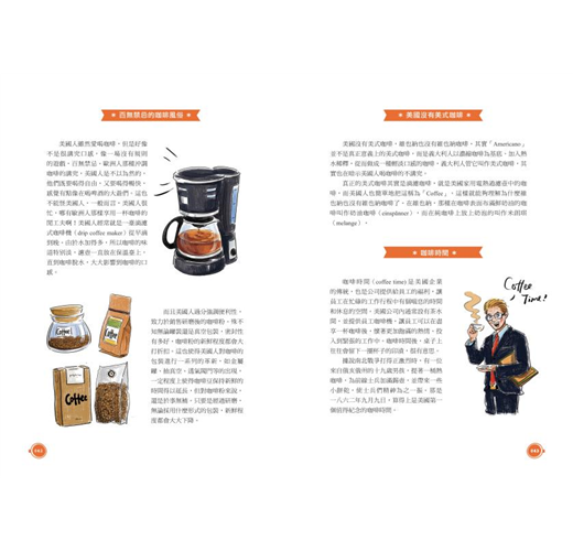 不但「畫」說古早的咖啡發源史,探訪咖啡採集與製作,還帶領我們一起暢遊美國、法國、義大利等世界各地的咖啡文化。