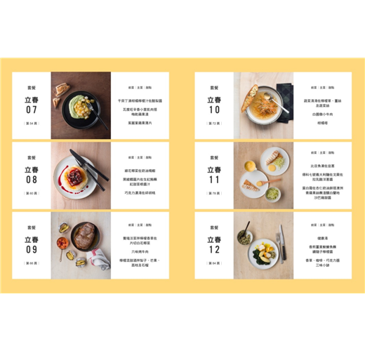 皮耶認為在冬季與春季交接的空檔,是一個特殊且獨立的季節。此時和煦的陽光和輕撫的微風,顯示寒冬已盡、大地回春,但大自然又尚未到生產的季節。於是身為廚師的皮耶,嘗試在市場缺乏食材的情況下,運用料理傳達復甦的意象。春夏秋冬加上獨立的季節「立春」構成五季料理,每個季節分別有6組套餐,藉由這90道獨具匠心的概念食譜,皮耶與我們分享他對料理以及生活的熱愛。