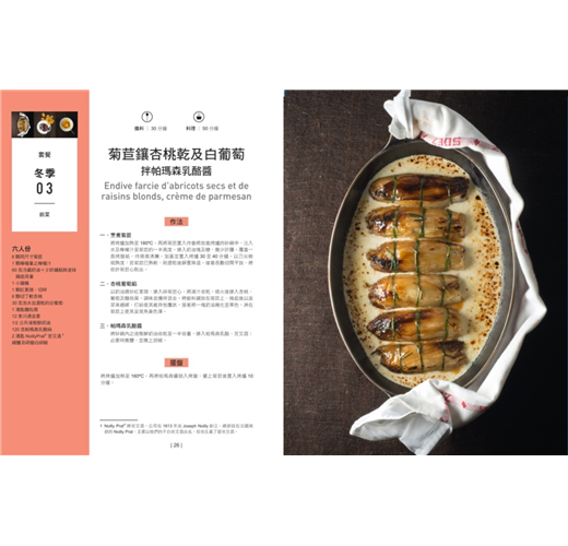 他的餐廳曾連續16年摘下米其林3星,成為廚藝界不敗的摘星神話;並連續10年入選「全球50大餐廳」(50 Best Restaurants),且連續3年(2006~2008)排名全球第3名。觀摩大師風範,了解法式料理的奧秘,就從他的首部著作30組套餐入手。每組套餐提供6人份的精緻餐桌料理,詳盡的步驟解說,引領你進入法式料理的華麗饗宴。