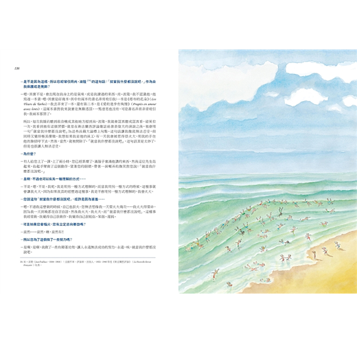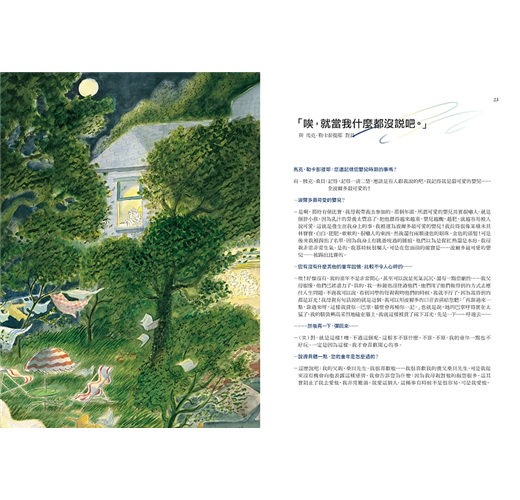 桑貝也在書中澄澈地告白:「我有時候是會⋯⋯變得很懂事,但是從來沒有變成大人。」你會壓抑不住嘴角的微笑,因為發現他說的是真的。本書收錄許多畫作,或新或舊,多數不曾發表,它們溫柔地召喚我們,召喚無憂無慮的幸福。