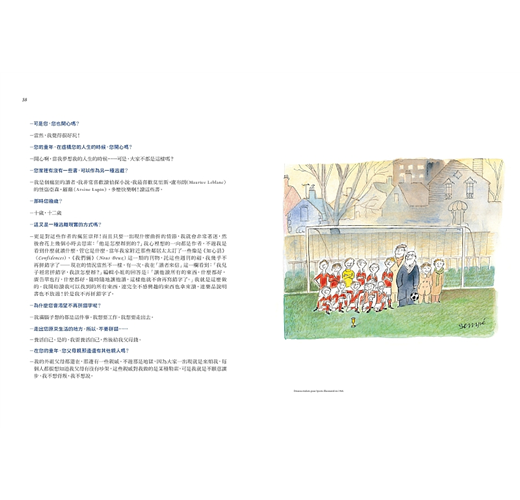 時間一年一年過去,但桑貝筆下的童年不曾老去,一如既往地純真,一如他眼中的自己:「從來沒有變成大人」。
