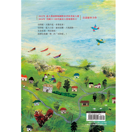 該書中描繪從一天之始到夜幕低垂的「有時候」。各式生靈的樣貌與各種自然的景色都一一在她的筆下呈現,有靜謐的、祥和的,也有兇猛的、動盪的。從尋常到非常,由渺小的人類拓展至宏偉的自然,阿力金吉兒把這些定格的畫面,輔以詩般的文字節奏,將時光的腳步及生命故事都收藏在本書中。
