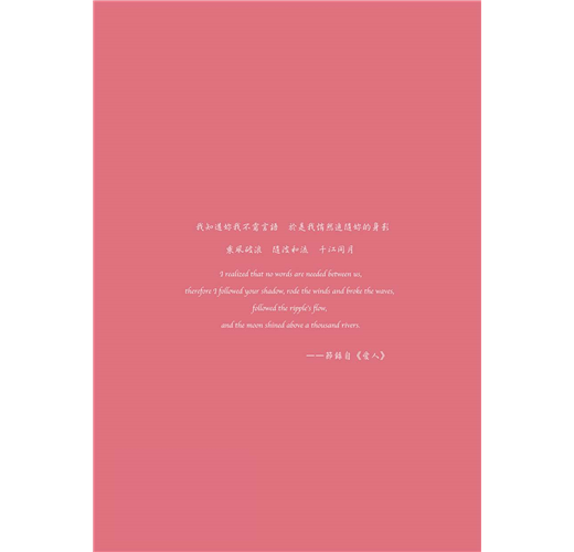 我知道妳不需言語/於是我悄然追隨妳的身影/乘風破浪/隨波和流/千江同月