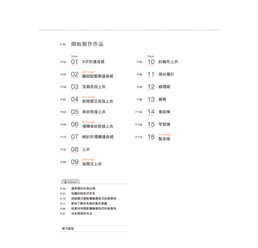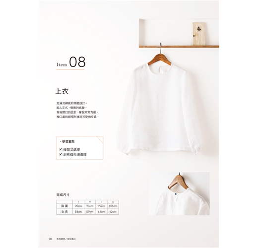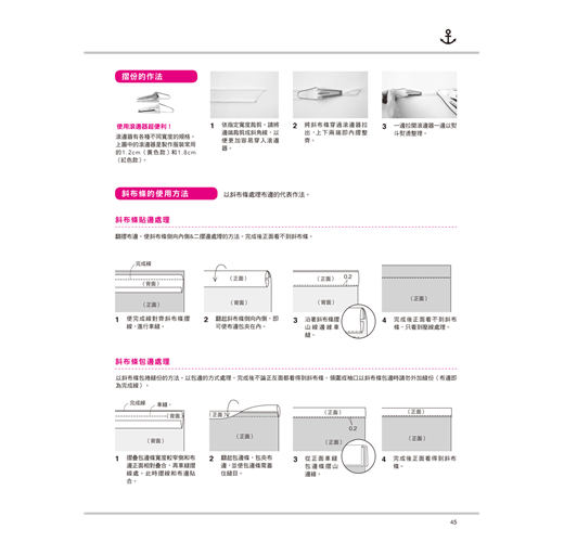 ‧布邊的處理──想要作出美觀又耐穿的衣物,布邊就要收得漂亮!不論是搭配斜布條滾邊、斜布條貼邊、Z字形車縫……縫製手作服常用的處理方式皆有詳細教學。