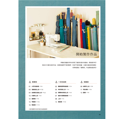 本書專為手作服初學者規劃了完整的基礎教學,所有縫紉新手會遇到的問題都有詳細的教學指引。