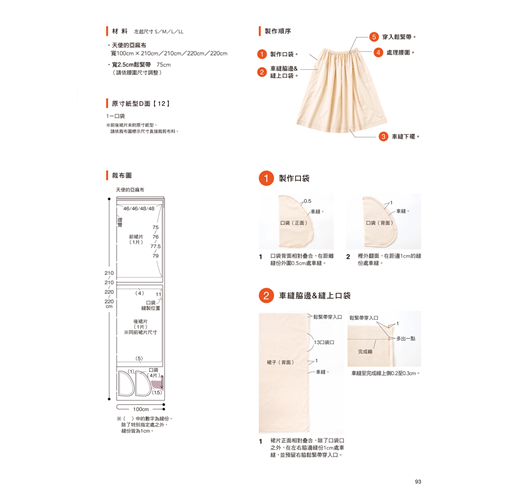 本書作品均附有S/M/L/LL等不同尺寸的原寸紙型&裁布配置圖,