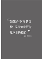 然而經年累月一成不變,卻是通往平庸的捷徑。平庸的企業無法生存。美國詩人圖利.庫普弗貝格(Tuli Kupferberg)說得精闢:「舊模式打破了,新世界就誕生。」所以變革是為任何組織開啟成長與振奮的大門關鍵;而你的挑戰在於......如何說服團隊成員相信,你正在開創的新天地,比你們目前置身的世界更美好。這簡單嗎?才不呢!這需要擬訂計畫、投入其中、以及耐心和勇氣。