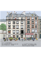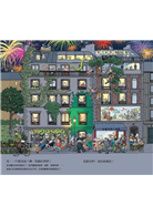 有一種表現時間的手法,就是把攝影機架在原地,每隔一段時間來拍攝,可同一天不同時段,或每日、每月、每年等不一。像是畫家莫內一旦迷上光影變化,就畫出了不同日照的乾草堆、大教堂等名作。這本繪本也用了固定場景的方式,讓讀者靜察一個社區的改變──每翻一頁也許過了一天、一個月、一年。主角從入住、邂逅女友、到結婚生子。周圍的鄰居上上下下、樓上樓下的公共空間也都有了或大或小的變化。於是這成了一本以「圖」為主的繪本,讀者(特別是孩子)可以從圖中反反覆覆得到很多樂趣。
