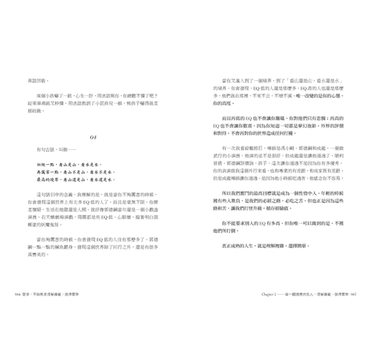 擁有幸福的愛情不難,唯有認清愛情的本質,認清自己,看懂人性,才能像航行在大海的船隻般,透過雷達精準地避開危險,安穩地開往目的地。因為世間上的任何一種愛或生活,都沒有原則可循。唯有生存的智慧,才能幫助自己在未知的人生道路上,從容自在地越走越廣,越走越遼闊。