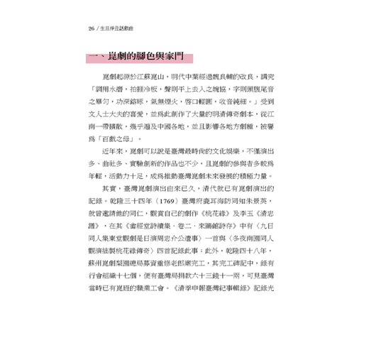 所謂的生、旦、淨、末、丑隱藏什麼人生智慧與特殊視角?數位戲曲專家以淺顯易懂、幽默機趣的方式,搭配一禎禎美麗的劇照,帶領讀者進入戲曲的世界。