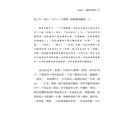 崑劇、南管戲、北管戲、京劇、歌仔戲……這些傳統戲曲有什麼特殊符碼?所謂的生、旦、淨、末、丑隱藏什麼人生智慧與特殊視角?數位戲曲專家以淺顯易懂、幽默機趣的方式,搭配一禎禎美麗的劇照,帶領讀者進入戲曲的世界,一窺粉墨下的真實面容。
