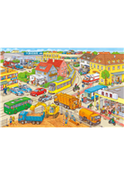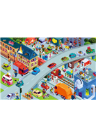 小鎮上正在舉辦車輛大遊行,有汽車、卡車、摩托車,各式各樣的車子,看起來好熱鬧呀!商家在市集廣場熱烈叫賣、消防隊員英勇滅火、高速公路上的大塞車是怎麼一回事?所有車輛聚集港口,世界大賽即將展開!跟著城市居民的腳步,前往由陸上建築工地延伸到海邊的全國巡迴大賽。