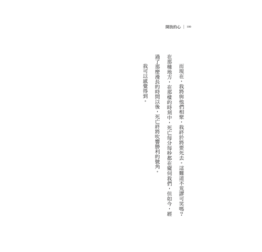 維瑟爾面對死亡自我省思,對於走過的生命歷程做出坦白的總結,澄澈明晰,引人細讀。《開放的心》呈現他的脆弱與決斷,傳達的思想與理念再清楚不過了。