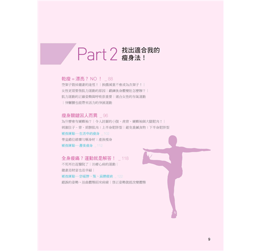 無論是倦怠時相互激勵,或是分享彼此的瘦身重要資訊等,一起運動的夥伴往往非常重要,當然,從現在開始這本書也會成為你的一個運動夥伴!