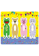《可愛 Party 變裝拼圖》共有十二個可變換變裝的魔術氈拼圖板,分成頭部、身體和腳三個部分,可組成四隻Special的可愛動物,孩子可以試著了解他們的名稱,並利用不同的頭部、身體和腳三個部分,創造出新鮮的、特別的、有趣的新物種。