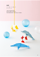 本書集結了大家最喜愛的可愛動物和鳥類。兔子在草地上奔跑跳躍、樹上多采多姿的鸚鵡輕囀歌唱、松鼠和鹿則正在親子共享用餐時光。將摺好的作品創作出自己的故事也很棒。夏天時,也可以用充滿涼意的北極熊和海豚來裝飾房間……