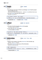 一般單字書只會告訴你「root = 根莖」「current = 現在的」這樣的概念,單字背誦的過程很容易單調、無趣,於是背過的單字很快就會忘得一乾二淨,問題就在於少了「關聯性的刺激」。本書除了列出單字的多種語意與例句之外,單字下方還整理了某些相關的說明,如「原意」「反義詞」「關聯詞」「相似詞」「同形詞(拼法一樣、意義不同的單字)」「衍生詞」或是其他解說等,讓你能藉由關聯性從各角度來深入了解單字,對大腦施加不同的刺激,以維持記憶續航力,同時還能「學一個單字記一串相關詞彙與用法」。例如:
