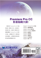 步驟再進擊:Step by Step引領讀者從無到有一步步完成目標,由淺入深 讓您學習基本剪輯流程、Effects 視訊特效、Transitions 轉場特效、素材的調整動畫、電影去背效果、文字動畫製作、與After Effects 的整合應用、製作DVD 光碟等實務應用與操作技巧。