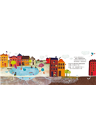 艾曼紐.烏塞斯用剪紙拼貼出鳥瞰圖,給予孩子非常具體的全景,讓他們更加清楚水循環的過程。鮮豔吸睛的色彩,不同材質的混搭,創造出一個立體的世界。每個畫面都安插了無數精心描繪的細節,值得慢慢品味,感受畫面散發出的輕快愉悅氣氛。此書以恰當、獨創且完整的方式來講述水循環,是一本極佳的繪本!